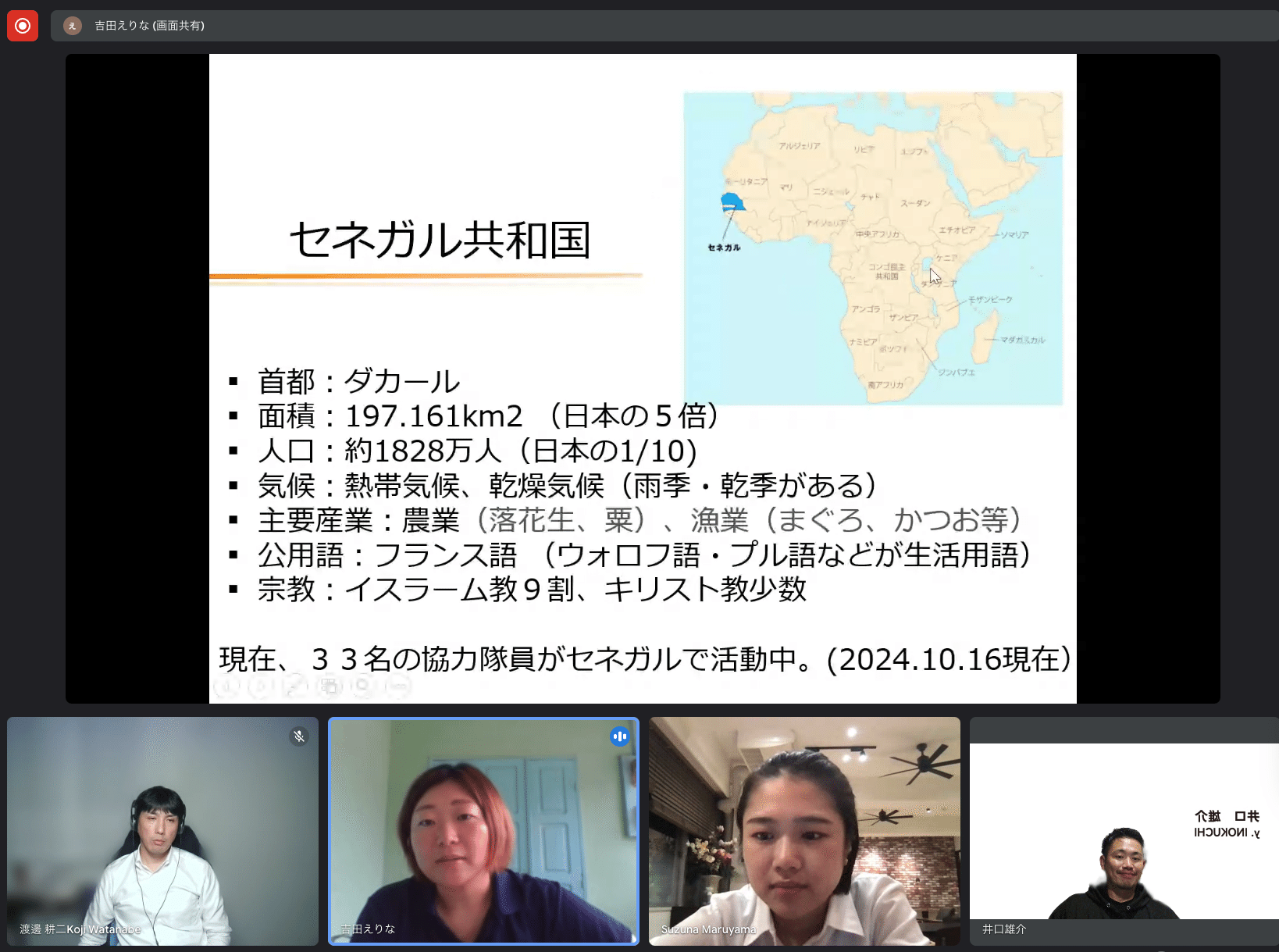 2024年10月。Kさんは大学4年生。セネガル隊員Oさんの説明会の様子